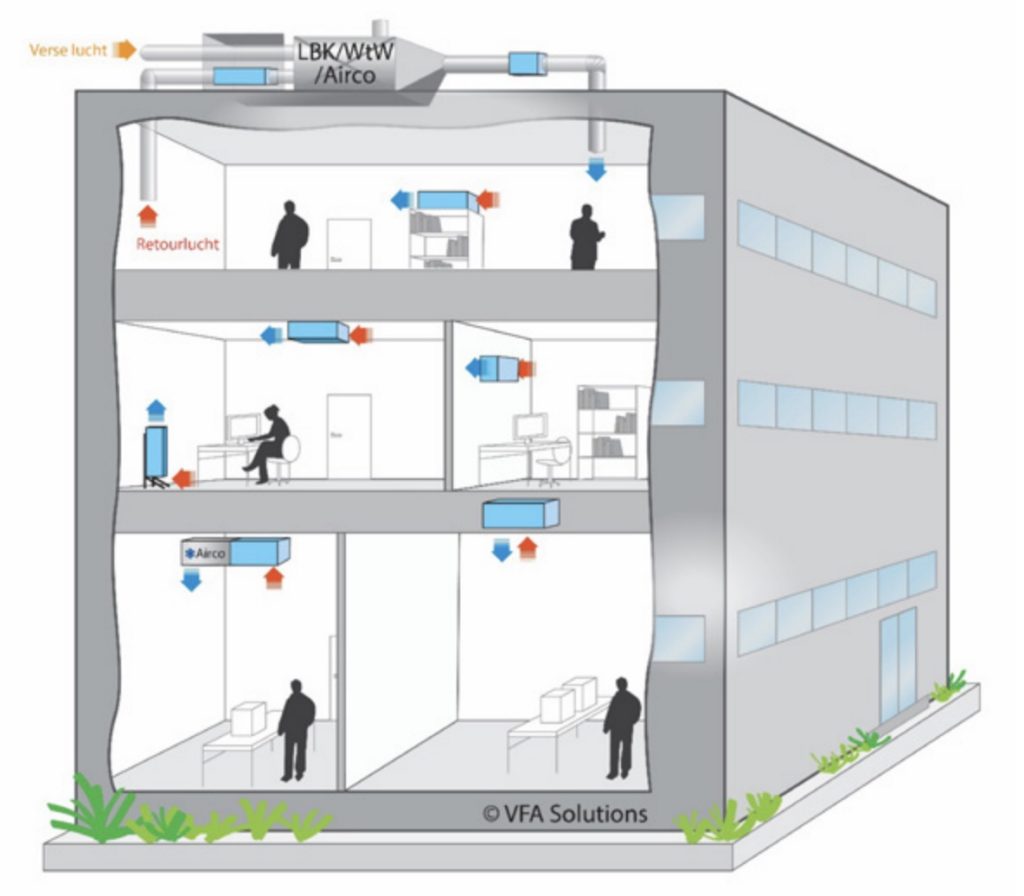 Nederland is een ventilatieland. Wij gebruiken ventilatiesystemen voor het toevoeren van verse lucht van buiten aan een ruimte waarmee concentraties van bijvoorbeeld ziektekiemen in de ruimte verdund en naar buiten afgevoerd wordt. In het geval van het coronavirus moeten dus virussen, druppels met virussen en fijnstof waaraan het virus gehecht is verwijderd worden. Ondanks ons vertrouwen in ventilatiesystemen voor het creëren van een gezond binnenmilieu, zullen er met de huidige pandemie situaties ontstaan waarbij op korte termijn andere technieken toegevoegd moeten worden om de besmettingskans onder acceptabele grenzen te houden. Gezien onze cultuur met betrekking tot ventileren vraagt dit om omdenken. In ruimten die niet voldoen aan de ventilatie-eisen van het Bouwbesluit en/of de ventilatie onvoldoende blijkt te zijn met betrekking tot de besmettingskans voor een betreffende druppelvormende activiteit (spreken, schreeuwen, zingen) kunnen filtratie en luchtreinigingstechnieken een alternatief bieden. Dit artikel is gericht op zelfstandige technieken (stand-alone) als recirculatiesysteem in de ruimte. Het artikel van Joosten e.a. (zie pag 36-42) richt zich meer op systemen in centrale luchtbehandelingssystemen.